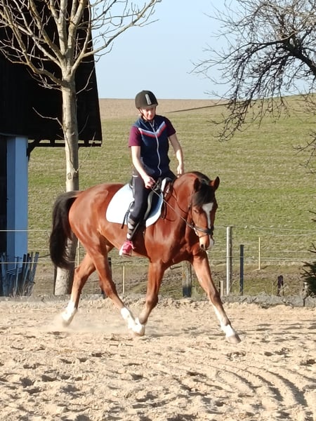 Baden-Württembergian Gelding – Perfect for Show Jumping Enthusiasts! For sale is a handsome chestnut Baden-Württembergian gelding, born in 2021. Standing at 16.2 hh, he offers an ideal size for ambitious riders. His versatile jumping talent makes him an excellent partner for competition riding or dedicated leisure riders. The young gelding is well-trained, attentive, and eager to learn. He already demonstrates promising jumping abilities and has a friendly, open temperament. Due to his age, he is perfectly suited for riders seeking a young, trainable partner with development potential. Please feel free to contact me for more information or if you are interested!