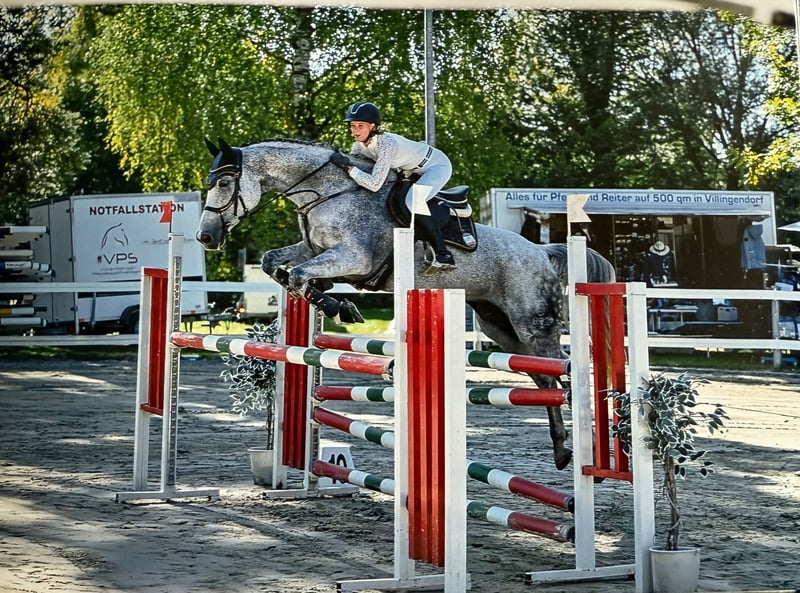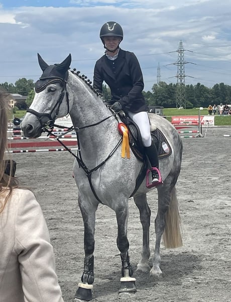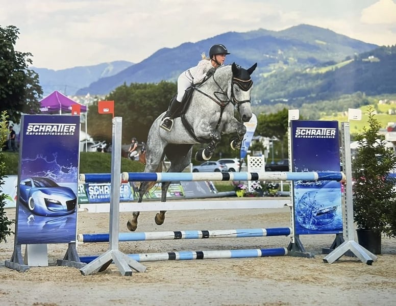 Schweren Herzens wegen Aufgabe des Reitsports liebe Stute weit unter Wert abzugeben. Aufgrund von einer Allergie (Futtermittel-Milben) Sowohl im Umgang, als auch in der täglichen Arbeit ist sie lieb und möchte immer alles richtig machen. Sie hat ein angenehmes Go, wir würden uns jedoch trotzdem einen Reiter mit etwas Erfahrung für sie wünschen, da sie im Parcour viel Go hat. (nicht so ganz einfach). Feli ist bis 115 mit einer jungen Reiterin platziert. Uns ist es sehr wichtig, dass sie in ein 5⭐️ Zuhause mit täglichem Koppelgang kommt, und wo sie genauso sehr geliebt wird wie bei uns. Sie steht tagsüber auf der Weide, oder auf dem Paddock in der Herde, nachts in einer grossen Box. Wenn Feli dein Interesse geweckt hat, kannst du uns gerne per WhatsApp unter +436602961593 kontaktieren und wir können auf Wunsch auch Videos versenden. Wir hätten auch noch einen 9-jährigen Schimmelwallach (letztes Bild), ebenfalls bis 115 gelaufen. Etwas speziell im Umgang. Direkt im Parcour super brav. Preis jedoch zwischen 15‘000 und 20‘000 EUR.