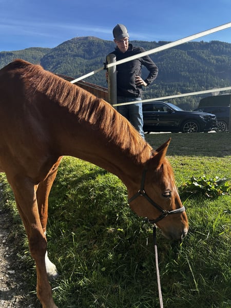 A wonderful 12-year-old Bavarian gelding is looking for his person. Le Petit d’Or, affectionately called “Goldi,” is a dressage horse confidently performing movements up to level M**. He has no trouble with piaffe and passage, as well as series of flying changes at home. During the 2025 season, he has been multiple winner of M** classes and has competed successfully in Austria and Switzerland. Goldi prefers to go to competitions over a weekend. He also enjoys working over poles and occasionally jumping for variety. Goldi can be a bit unsure in the terrain, but with a companion, even this is manageable. In handling, he is an absolute sweetheart. Whether grooming or in his box, Goldi is always gentle and friendly with his people. Although he is a fantastic partner, he is not suitable as a beginner’s horse. He sometimes needs the rider to provide him with a bit more confidence and can occasionally be a bit wary of other horses. Please feel free to contact me if you have any questions.