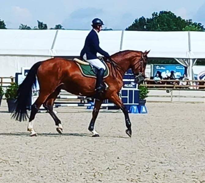 Bardzo dobry koń skokowy: poziom 130 cm Obecnie w ciąży z KWPN-em ogierem R. Elfhaban Van Beek Z. spodziewana końcówka kwietnia 2026 roku. Wygrał cykl STX Azelhof dla 6-latków w 2023 roku. Wyprodukował już dwa wspaniałe konie. Do obejrzenia na miejscu. W celu uzyskania informacji prosimy dzwonić: 0032469230678