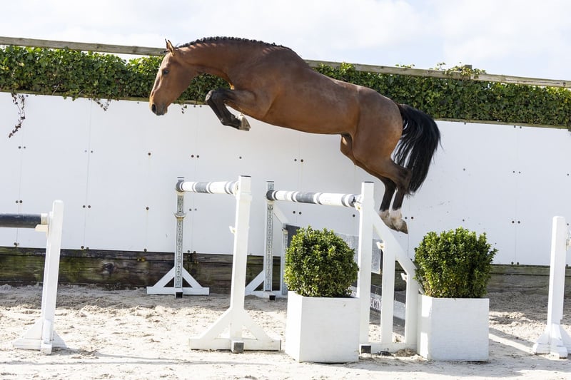 ANTARES K VAN KATTENHEYE is een paard met een mooi hengstenmodel en veel uitstraling. Hij straalt vermogen uit en laat zich zien als een modern sportpaard met kwaliteit. Op de sprong toont hij een goede techniek en veel aanleg. Hij springt met overzicht, laat een correcte manier zien en toont veel afdruk. Een paard dat het werk makkelijk oppakt en zich goed presenteert. Hij beweegt met voldoende souplesse en balans en laat zich makkelijk zien. Een paard dat zich prettig zal ontwikkelen richting de sport. Naar onze mening een interessant paard met kwaliteit en toekomst. Vader Kannan sprong op 1.60m niveau en behoort tot de absolute wereldtop van de verervers, met talloze nakomelingen op het hoogste niveau zoals Nino des Buissonnets (Olympisch kampioen), Quabri de l’Isle (1.60m) en Molly Malone V (1.60m). Moeder is afkomstig uit de sterke Kattenheye-stam, een bewezen prestatiefamilie waaruit meerdere internationale springpaarden voortkomen. De moederlijn brengt verschillende paarden op niveau: meerdere internationale springpaarden op 1.40m – 1.60m niveau diverse goedgekeurde hengsten Een stam die zich keer op keer bewijst in de sport.