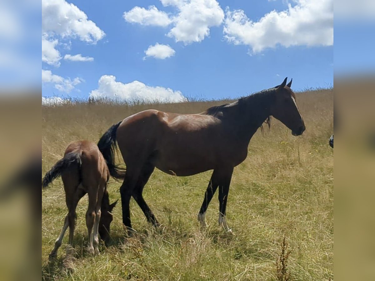 Pita has given birth to four wonderful, character-wise impeccable foals with us (some can be viewed). She conceives easily, and the pregnancy and birth have always been problem-free. As is fitting for a breeding mare, she is a great and caring mother. She is completely easy to handle. In box stalls, she tends to be a bit sassy towards passersby, but as soon as you are in the box and attend to her, she is absolutely peaceful. Pita has competed in show jumping up to 105 cm. Currently, she is not being ridden and has a foal at her side. Pita can be sold after weaning the foal. She can also be bred at the future owner's expense upon agreement. Pita is being sold due to a reduction in stock. For more details, feel free to contact via WhatsApp or phone! 015221976030