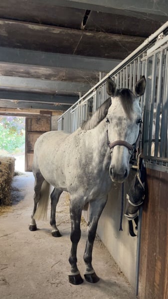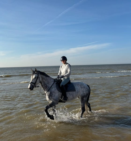 With a heavy heart, I am offering my beloved mare for sale. Tia is a 6-year-old showjumping-bred mare. She has competed in jumping courses up to 100 cm. I am selling Tia as an all-round horse because I have noticed that she enjoys variety the most. She is well-behaved on walks, both alone and in a group. She has been to the beach and forest several times. I believe she would also be suitable for cross-country riding, as she never hesitates at jumps. She would never refuse a fence. She also has a good basic dressage foundation. She can be sold with all her equipment. A fitted jumping saddle (Prestige) can also be included for an additional price. In short: Tia is a lovely horse for a versatile rider who prioritizes fun and enjoyment. You can contact me via WhatsApp or call at +32 468 127 599.