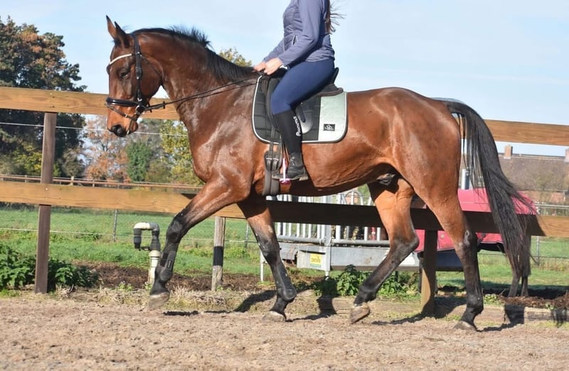 Röntgen OK, correcte , lieve BWP ruin Rechtstreeks van de fokker mochten wij hem overnemen, samen met stalgenootje Valesco vd Melane. Ontmoet Voltaire van de Melane, een imposante en elegante 4,5-jarige ruin van ca. 1.75m, met een uitstekende afstamming: Querido VG x Concorde Z x Tresor D 12. Klik HIER voor zijn papier. Een paard met een mooie toekomst , geschikt voor zowel sport ( dressuur+ springen) als recreatie. Voltaire is prachtig gebouwd en beschikt over veel uitstraling en souplesse. Het is een vriendelijk, vrolijk en positief paard. Onder het zadel laat hij hier zijn natuurlijke balans en meewerkende karakter zien. Hij zoekt fijn de verbinding met de ruiter en is prettig te rijden. Hij is hier en voorheen goed verkeers,- en trailermak. Heel erg sociaal. Vrij van ( stal) gebreken. Voltaire is kerngezond en kan enorm goed bewegen, met veel cadans , balans en ruimte. Hij is röntgenologisch en klinisch goedgekeurd, zowel de benen als rug en hals. € 9750,- incl. merkzadel en hoofdstel compleet.