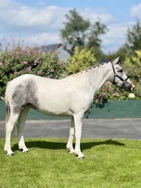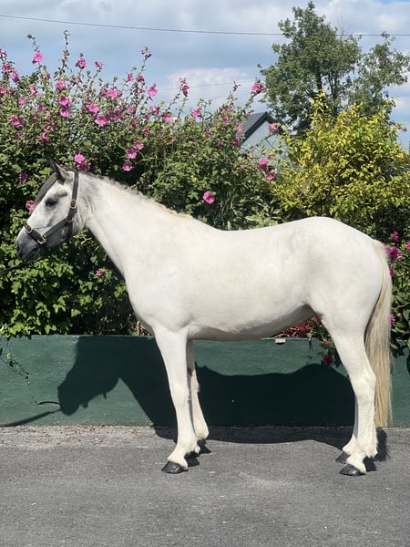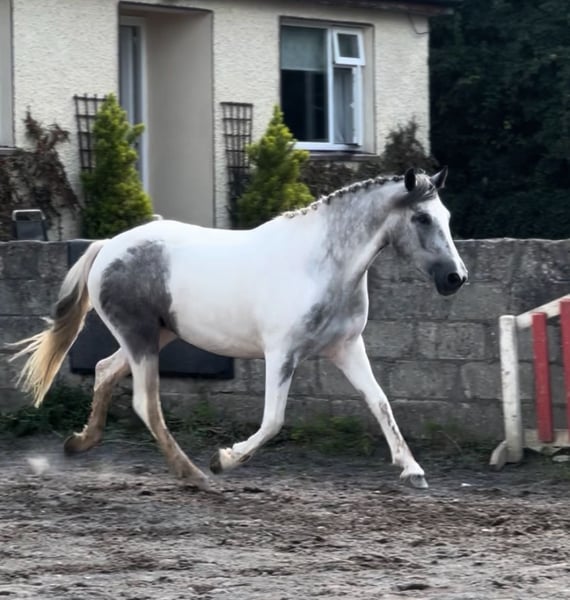 Top Class Blue & White Mare – 3 year old 14.3hh Gorgeous 3-year-old blue & white mare with serious show ring potential. Standing at 14.3hh, she is straight ,correct, and a lovely mover. Lovely model would excel in a show ring. Also showing potential over a pole • 3 years old, 14.3hh • Blue & white, beautifully marked • Straight, correct conformation • Showing potential loose jumping • Ready to produce A quality blank canvas for someone to bring out her full potential. 📍 Galway, Ireland 🇮🇪 📩 WhatsApp or Call for more info