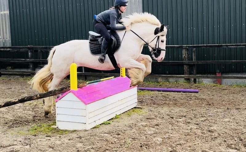 **For Sale: Stunning Irish Cob Mare** Meet Jill, our beautiful 2020 born mare, standing at 153 cm (15hh) . Her charming personality and gentle demeanor make her an ideal companion for riders of all levels. Whether you’re looking to compete or enjoy leisurely rides, she is ready to take on any challenge with enthusiasm and grace. With her unique coloring and athletic build, she is sure to turn heads wherever you go. Don’t miss the opportunity to make this exceptional mare a part of your equestrian journey! Exceptionally brave at x country schooling. She will take the rider to all types of obstacles bravely. Contact us for more information and to arrange a visit. Your next equine partner awaits! Price €6500. Located in Sligo, Ireland. Regular professional transport available if required. For further information or videos please contact Edward on 00353871412129. All enquiries welcome!