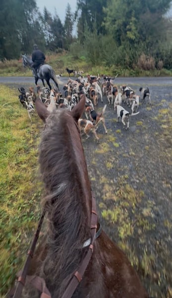 Super adorable Irish Cob mare, experienced in hunting and trail riding, available to a caring new owner. Beautiful 8-year-old imported from Ireland, a true dream mare that’s hard to find, yet full of spirit and the most enchanting temperament imaginable. She trots over when you arrive, seeking cuddles, and is extremely calm and sociable with all horses. Until about four weeks ago, she regularly participated in hunts with a young rider. We haven't measured her yet, but she easily covers rider heights up to 180 cm (the rider in the photos is between 170 and 203 cm). She is the ultimate all-rounder for trail riding—excellent loading, traffic-safe, completely fearless, and straightforward. Likely suitable as a trekking horse, Western riding horse, or even for riding schools, thanks to her gentle and patient nature. Due to her beauty and temperament (chestnut with three white markings and silver-gray mane and tail), she would also make a wonderful broodmare. We would love to see her in sporty hands that enjoy trail riding and can give her the love she deserves. A very fair price for such an exceptional Irish dream horse: 9999 € 🥕 Please contact via WhatsApp: 0176 2377 1159