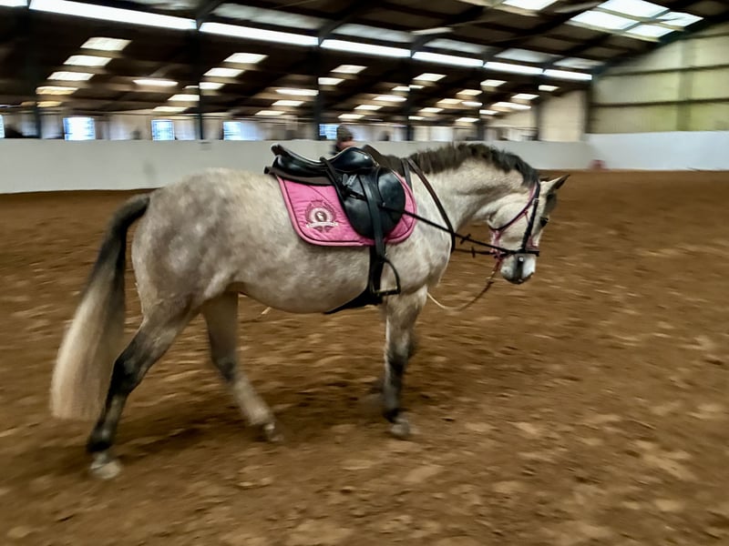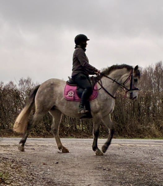 One for the future! Promising 5 year old Class 1 full Connemara mare with excellent bloodlines (Rialto Gillian de Seguret X Cloon-Eile-Cashel) is looking for a five star new home. KIYA'S CALHEESY OF PEYREDRAGON Very nice feminin model, small size D, NN for HWSD, registered in Belgian stud book, very good mover who is eager to learn and to please. Loads easily, fine with farrier. In order with vaccination, deworming and dentistry. Used to stabling and living in a herd outside. Has been gently and slowly trained in groundwork and broken in by horsemanship professional and ridden by a child (see video) at the end of 2025. Will start her jumping education in April. Lovely gaits. Had a very nice filly foal by a son of Banks Timber last year (see photo) – foaled easily on her own and turned out to be an excellent mum. Can be visited in Bastogne in Southern Belgium. More information, photos and videos on request. Price negotiable for the right home.