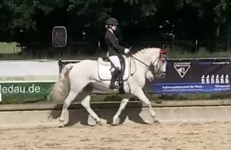Lieber Connemara-Wallach – Perfekt für die Freizeit! Zum Verkauf steht ein 13-jähriger Connemara-Wallach. Er ist ein Fliegenschimmel mit einem Stockmaß von 154 cm und überzeugt durch sein freundliches, ruhiges Wesen. Romeo wurde bis zur Klasse A ausgebildet und ist für jeden Spaß zu haben. Im Gelände ist er super brav sowohl alleine als auch in der Gruppe. Leider wurde bei ihm Equines Asthma diagnostiziert weswegen er unter Wert angeboten wird. Mit bedampften Heu stellt das Asthma für ihn allerdings keinerlei Probleme dar und er ist voll belastbar. Ebenso inhalieren wir bei Bedarf mit NaCl. Aufgrund seiner Krankheit ist er nicht in Anfängerhände abzugeben, da eine gewisse Erfahrung in dem Bereich besser ist. Bei Interesse freue ich mich auf Ihre Kontaktaufnahme!