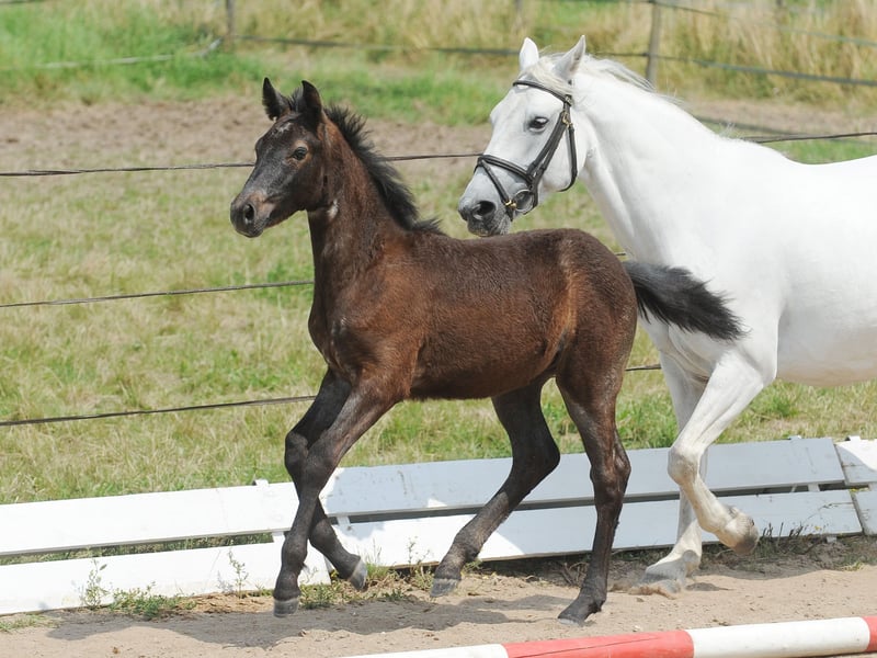 Lisbergs Prince Philip Lisbergs Prince Philip was born on April 10, 2021, at our stud farm. He was born at 5:16 a.m. as a dark bay (rapp-Schimmel). His mother, Mask View Molly, is a well-trained Connemara mare who, before coming to us, was actively competing in Dutch pony sport from the smallest classes up to 2-star jumping and A-level dressage. She carries rare bloodlines, including the popular Glencarrig Prince, Ballyard Prince, and Rocklands Prince lines, with Hazy Dawn blood! Lisbergs Prince Philip’s sire, Pattys Veuve Cosmic, is a Hanoverian-approved stallion, recognized in Bavaria and southern Germany. He boasts excellent bloodlines and achieved an above-average performance test score of 8.2! He is also a successful competition pony, a well-behaved driving horse, and has numerous progeny and grandchildren worldwide. Lisbergs Prince Philip was raised very carefully at our stud farm, initially with his mother in a foal stall, later in a mixed herd of colts and geldings. Since foalhood, he has been regularly wormed and vaccinated against tetanus, EHV-1,4 (herpes), and equine influenza. He has never been ill, and his teeth are regularly checked. Philip was gently lunged, then backed, and in September 2025, he completed his two-day short-term test, also known as a performance test, with a score of 6.93. During this test, he was assessed in free jumping, ridden in a dressage test plus one external rider test, and the next day, he completed a jumping course plus two additional external rider tests. He was presented at the licensing on November 22 but was not approved, as he aligns more with the sport pony type. Therefore, he is now a nearly 5-year-old gelding standing at pony-end size, available for sale. For the licensing, he was examined by a veterinarian, including flexion tests and dental check-ups. He has not been X-rayed yet, but this can be arranged as part of a pre-purchase examination by the new owner. Currently, he measures approximately 1.47 m. Lisbergs Prince Philip is ideally suited for pony sport or for confident young riders or petite adult riders. He is progressing well in dressage and jumping, aiming for A-level, as confirmed by his performance test at the end of September. He is familiar with hacking, some indoor arena work (still needs practice with multiple riders), grooming in the wash box, braiding, solarium, transporter and trailer rides, including longer distances, riding on the outdoor arena, and various training facilities. He has no bad habits, is well-behaved in handling, and remains calm in turnout. Currently, Lisbergs Prince Philip is awaiting his castration, which has been postponed several times due to the veterinarian’s illness and emergencies. If you are interested in Lisbergs Philip, please contact the numbers listed in the ad directly. When sending an email, kindly include your name and mobile phone number. You can also reach us via WhatsApp at +49 171 3415878. Unfortunately, mobile calls do not work well in our beautiful village! The complete pedigree can be found in the documents, as ehorses sometimes misses parts of the lineage. We charge a €50 introduction fee per visit to our farm, and €70 on Sundays and public holidays, payable in cash upon arrival. Best regards, and maybe see you soon – Lisbergs Stud Farm is always worth a visit! Thank you for your interest! Your Lisbergs Stud Farm