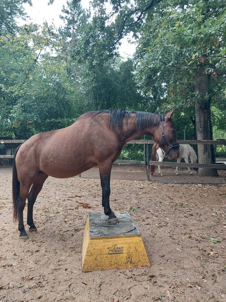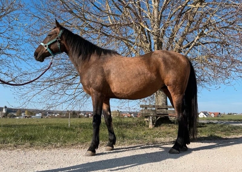 Our 13-year-old Quarter Criollo cross mare Libi is looking for a new home. Libi is approximately 1.47 meters tall and was originally brought to us for children's pony riding. Unfortunately, it turned out that she is not suitable for that purpose. We are offering her as a companion horse, as she is relatively untrained and currently not in active training. Her musculature would need to be developed initially. She is familiar with the terrain and motivated when out riding. In handling, she is attentive and well-behaved – she enjoys walks and groundwork. She is also very gentle and easy to handle at the farrier. Currently, she is barefoot, but she has also been shod before. With patience and targeted training, Libi can certainly become a wonderful leisure partner. We would be happy to find a new suitable home for her. Please feel free to contact us with any questions or if you're interested.