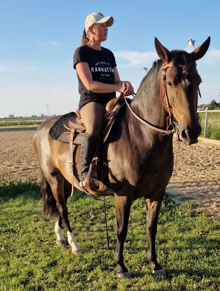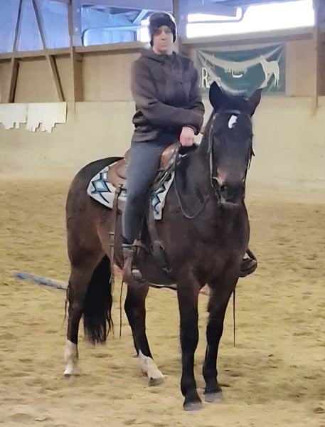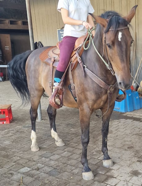 Ohio is eager to please and enjoys ground work; he is comfortable in the indoor arena and out on the trail. I have riding rights, but due to age-related knee issues and overweight, I no longer ride him. Ohio can be kept in an open stable, as he was raised that way; currently, he is housed in a box stall with turnout during the day. He has no known illnesses or health issues, either now or in the past, according to his previous owner. The price includes the saddle, if desired.