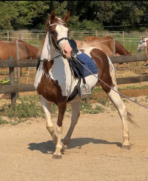 Wunderschöne Pia-Stute zu verkaufen, mit einer Größe von 1,62 m. Edles und freundliches Pferd, bereits in den drei Grundgangarten geritten, sehr ruhig und ausgeglichen, angebunden an Koppel und Limoneira. Sie erschreckt vor nichts und war bereits auf Straßen und Märkten unterwegs. Auch geeignet für unerfahrene Kinder, Ausritte und Spaziergänge. Mit dieser seltenen Fellfarbe und einem Herz am Hals sowie einer schönen Morphologie, ideal für Zucht, Freizeit oder als Begleitpferd.