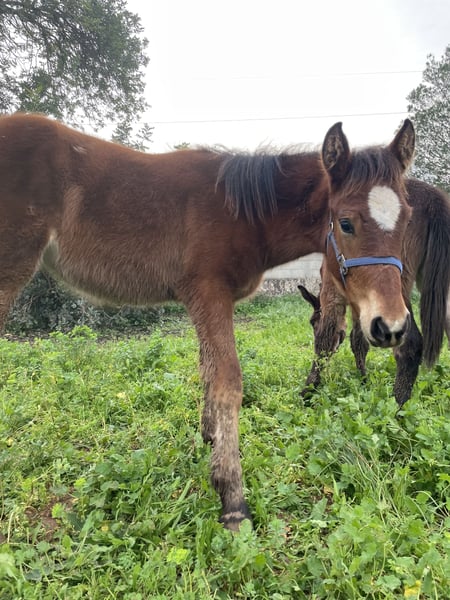 Nai SB ist eine 8 Monate alte Stute, Nachkomme eines American Paint Crosses x Hispano-Breton. Sie ist eine ideale Jungstute für die Reiterei, Kutschfahrten oder Zucht, dank ihres vielversprechenden Farbpotenzials (Vater: Alazan Paint, Mutter: Ruana).