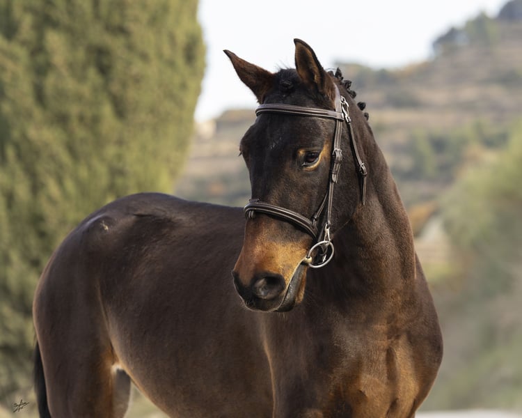 Drei Jahre alte Stute, die im Jahr 2026 vier Jahre alt wird, mit einem sehr aktiven, lebhaften und ausgeglichenen Temperament. Sie zeichnet sich durch ihre leichte Handhabung aus, was sie sowohl für Ausritte als auch für Reitanfänger, dank ihres guten Benehmens und ihrer Noblesse, ideal macht. Sie verfügt über gute Grundgangarten und zeigt beim Trab sehr schöne Bewegungen, was sie besonders für die klassische Dressur geeignet macht. Sie zeigt eine schnelle Auffassungsgabe und eine ausgezeichnete Reaktionsfähigkeit auf die Hilfen des Reiters. Im Springen hat sie bis 0,60 m gezeigt, dabei gute Technik und viel Potenzial für die Zukunft, was sie zu einer interessanten Option für alle macht, die eine vielseitige Stute suchen. Außerdem wurde sie auch im Freispringen getestet, mit ziemlich viel Bereitschaft, bis 1,10 m! Sie ist sehr sozial, sowohl im Umgang mit anderen Pferden als auch mit Menschen, ohne Vorerkrankungen, ruhig im täglichen Handling und an das Longieren gewöhnt. Sie hat eine gute Widerristhöhe von etwa 1,60 m und wächst weiterhin. Sie ist aktuell geimpft und hat ein ausgeglichenes Wesen, das sie sowohl für Freizeitaktivitäten als auch für den sportlichen Einsatz perfekt macht. Sie befindet sich in 📍SUBIRATS, Barcelona. Für weitere Informationen kontaktieren Sie bitte WhatsApp unter 644 005 817.