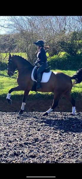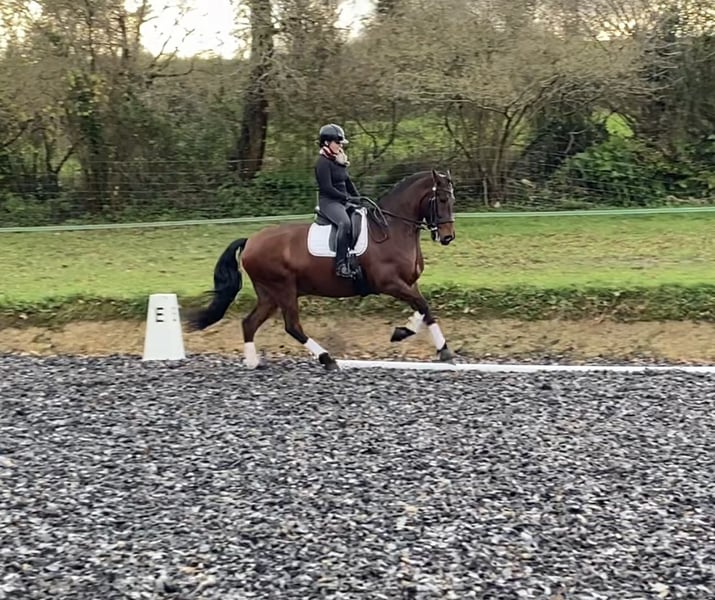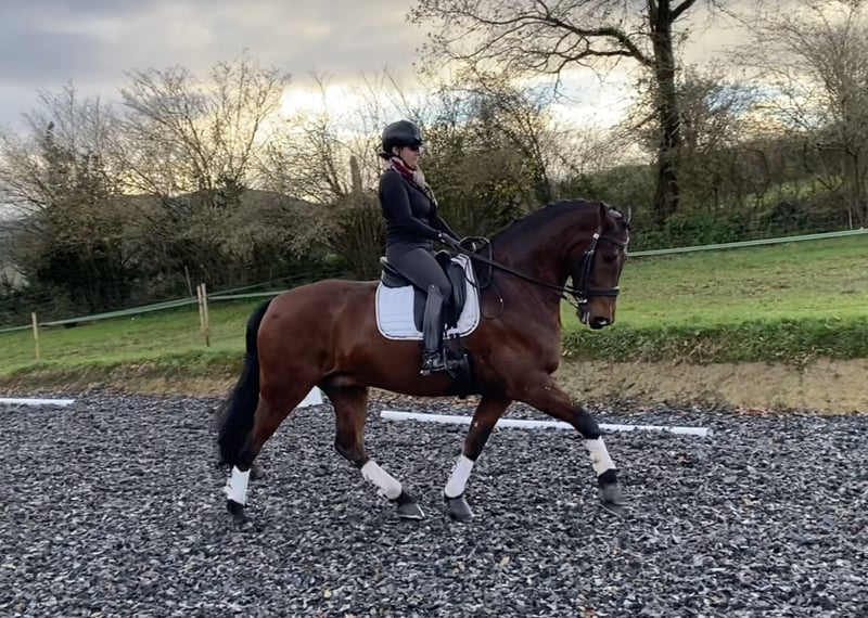 Capri is a hardworking and very willing horse. Easy and comfortable to ride. He has a very solid foundation and demonstrates good collection. He has a friendly temperament and is easy to handle. He is well-suited for outdoor riding alone or in a group. He loads and travels well, and is accustomed to the farrier, clipping, and other routine procedures. He is not easily spooked and remains focused on his rider. Ideal for riders who have competed up to an advanced level but are now of an age or have injuries that prevent intensive training, yet still want to enjoy working in classical dressage without physical discomfort or frustration. It is also suitable for riders looking to get started in more advanced dressage. Additionally, he could be an excellent carriage horse, thanks to his strength, size, good cadence, and comfort. Capri is ready to bring great joy to a fortunate rider who recognizes his potential!