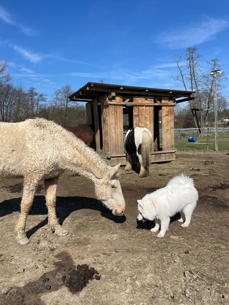 Du suchst eine persönliche Alternative zu großen Reitställen? Du möchtest dich intensiv um ein Pferd kümmern – mit viel Zeit für Pflege, Training und Ausritte? Dann bist du bei uns genau richtig! Unsere Pferde – zwei liebe Wallache, jeweils einzeln zur Reitbeteiligung vergeben: Achtung - der Irish Tinker ist aktuell nicht mehr zu vergeben! Irish Tinker, 12 Jahre, ca. 148 cm Stockmaß Gutmütig, ausgebildet und sehr bemüht – ein verlässlicher Freizeitpartner für entspannte Ausritte und Bodenarbeit. American Bashkir Curly Horse, 6 Jahre, ca. 160 cm Stockmaß Grundausbildung inkl. Beritt vorhanden, aber noch in Entwicklung – ideal für erfahrene Reiter:innen mit Freude an Ausbildung und Geduld. Beide Pferde sind Western ausgebildet, mit passenden Westernsätteln ausgestattet und werden rein freizeitmäßig geritten – ganz ohne sportlichen Druck. Was dich erwartet: Reitbeteiligung für jeweils ein Pferd – du entscheidest, mit welchem du deine Zeit verbringen möchtest. Keine Einschränkung der Reittage – ob 1 oder 5 Tage pro Woche, alles ist möglich, wobei das Wohl der Pferde im Vordergrund steht. Privater, ruhiger Stall mit Roundpen und Wiesenreitplatz. Wunderschöne Ausreitmöglichkeiten direkt ab Stall. Reiterfreundliches Umfeld – das Dorf ist geprägt von Pferdehaltung und einer rücksichtsvollen, pferdefreundlichen Bevölkerung. Was wir uns wünschen: Als private Haltergemeinschaft freuen wir uns über Unterstützung bei der Stallarbeit (Füttern & Misten). Dafür bieten wir zwei faire Varianten: Variante 1: 1 Tag Stallhilfe pro Woche → 100 € pro Monat pro Pferd Variante 2: 2 Tage Stallhilfe pro Woche → kostenfrei Du solltest mitbringen: Pferdeerfahrung (besonders für den jungen Curly Wallach) Verantwortungsbewusstsein & Verlässlichkeit Freude am Umgang mit Pferden und Stallarbeit Interesse an einer ruhigen, persönlichen Umgebung ohne Trubel Interesse? Dann melde dich gerne mit ein paar Infos zu dir und deinen Erfahrungen. Wir freuen uns auf dich!