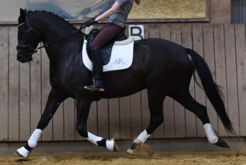 Wunderschöne und gutmütige 5-jährige Stute mit großem Potenzial. Suchen Sie ein kooperatives und gut ausgebildetes junges Pferd mit einem fantastischen Temperament und großem Leistungsvermögen? Dann ist Latoya die offensichtliche Wahl! Latoya durfte in ihrem eigenen Tempo aufwachsen und wurde daher nicht unter Druck gesetzt, in den Sport einzutreten. Sie entwickelt sich mit jedem Training positiv und zeigt ein großes Verständnis für die Gesamtübungen. • Wunderschöner Schritt, rhythmischer und energischer Trab sowie ein großer und großzügiger Galopp. • Unkompliziert und kooperativ mit viel Energie, liebt es zu arbeiten. Sie ist neugierig und positiv gegenüber neuen Herausforderungen. • An Bodenarbeit, Longieren und Umwelteinflüsse gewöhnt. • Steht auch alleine schön im Stallgang, kann überall gewaschen werden und ist sowohl für den Schmied als auch für den Tierarzt leicht zu handhaben. • Röntgenbilder ohne Befund aus 2023. Trägt 4 Beschläge. Vollständig beschlagen. • Gutmütig und einfach zu reiten – wird ohne Hilfszügel geritten. Ausrüstung kann erworben werden.