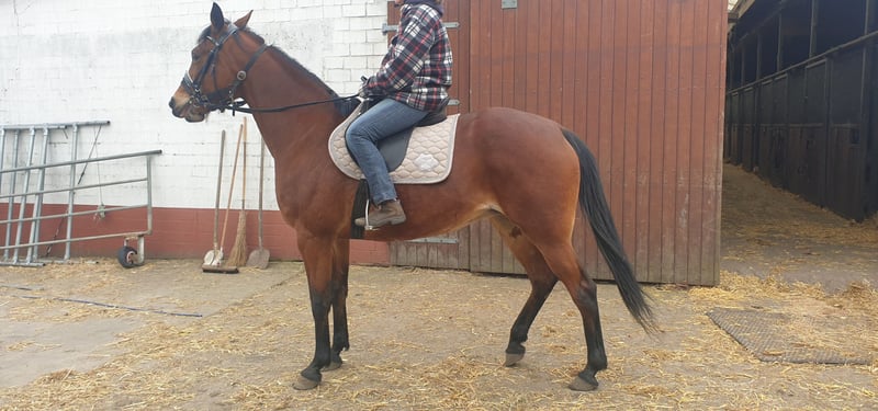 Hübsche und kräftige Traber Stute 13 Jahre jung unverbraucht mit einem Stkm. 163 cm. In jungen Jahren ist sie Rennen gelaufen danach war sie in der Zucht. Die Stute kommt aus 1. Hand und wurde immer gehegt und gepflegt hat nie was schlechtes Erfahren. Keine Vorerkrankung/ Verletzungen. Geht Barhuf ist unkompliziert kann in gemischter Herde stehen ob Offenstall oder Nachts Box. Wir fangen gerade an sie unter dem Sattel zu arbeiten. Platz vor Preis