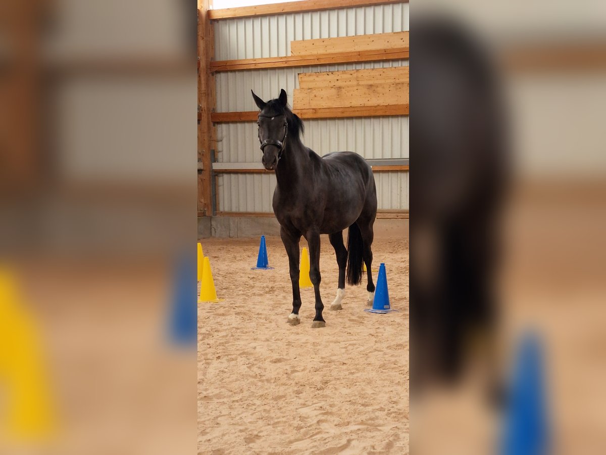 Verkaufe deutsches Reitpferd – elegante Rappstute Zum Verkauf steht eine wunderschöne deutsche Reitpferdestute, geboren im Jahr 2022. Mit ihrem edlen Rappen-Fell und einer Stockhöhe von 168 cm vereint sie Kraft, Anmut und Vielseitigkeit. Sie ist ideal für den Dressursport geeignet und überzeugt durch ihre aufgeschlossene Art sowie ihre Lernbereitschaft. Die Stute ist gesund, und bringt beste Voraussetzungen für eine erfolgreiche Zukunft im Dressurviereck mit. Sie ist noch roh. Stammt ab von Fair Game ×Topas. Da es mir gesundheitlich nicht gut geht gebe ich sie schwerens Herzens ab . Nur in besste Hände. Bei Interesse oder weiteren Fragen stehe ich gerne zur Verfügung.