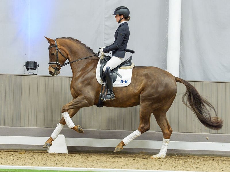 Mit viel Ausdruck und Abdruck aus dem Hinterbein betritt diese schicke Dunkelfuchsstute das Auktionsparkett in Münster-Handorf. Donna Vivaldi ist ein hervorragendes Pferd zur weiteren Ausbildung. Alle Infos zum Auktionslot hier: https://bit.ly/WestWinterAuk