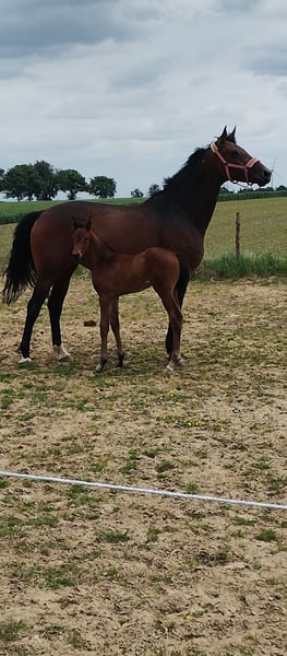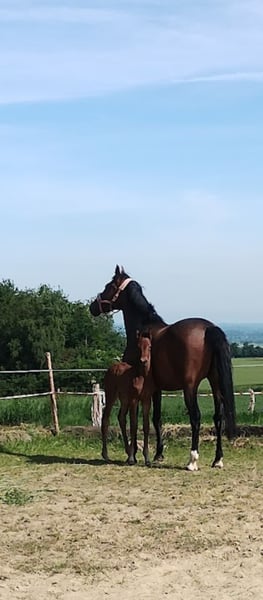 6jährige Stute von Zoom . Jetzt länger nicht geritten wird sie ausschließlich als Zuchtstute verkauft. Dieses Jahr hat sie ein tolles,typvolles Stutfohlen bekommen.