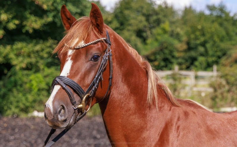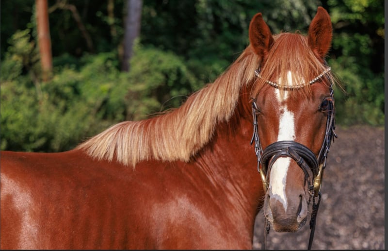 **Sales Advertisement: German Riding Pony Stallion** For sale is a beautiful German Riding Pony stallion, born in 2022. This dark chestnut impresses with his charming personality and promising potential in dressage. Furthermore, he has a very nice jump. **Features:** - **Breed:** German Riding Pony - **Gender:** Stallion - **Year of Birth:** 2022 - **Color:** Dark Chestnut - **Height:** 141 cm - **Discipline:** Dressage Our stallion already shows promising approaches in dressage work and has a wonderful, eager-to-learn temperament. With his three very good basic gaits, he is a worthy descendant of his magnificent father and a candidate for the FEI tour. He is well-mannered and already performs all basic gaits. He is suitable for both experienced riders and ambitious young riders who enjoy dressage and are looking for a reliable partner. If you are interested or would like more information, we look forward to your message!