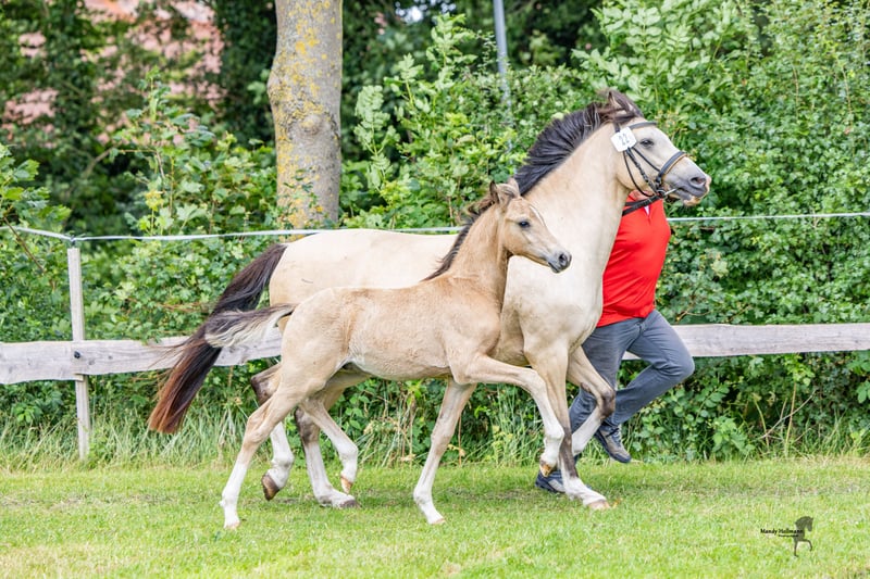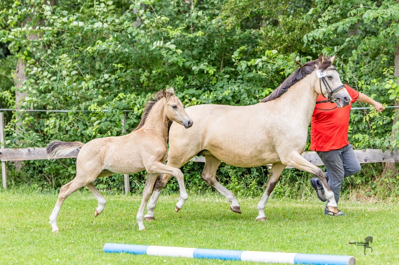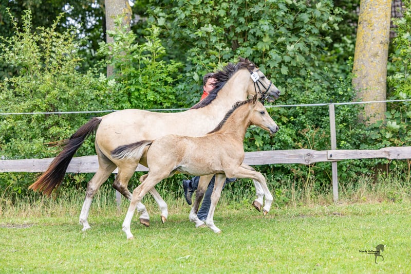 **Verkaufsanzeige: Deutsches Reitpony Hengst** Zum Verkauf steht ein vielversprechender Deutsches Reitpony Hengst, geboren im Jahr 2025. Mit einem Stockmaß von 145 cm und seiner wunderschönen Buckskin-Färbung zieht er alle Blicke auf sich. Dieser talentierte Hengst ist bestens geeignet für den Dressursport. Er verfügt über eine ausgeglichene und freundliche Persönlichkeit, die ihn zu einem idealen Partner für Reiter aller Erfahrungsstufen macht. Er ist gut erzogen, brav im Umgang und hat bereits erste Erfahrungen unter dem Sattel gesammelt. Sein Potenzial im Dressursport ist enorm, und er wird sicherlich viel Freude und Erfolg bringen. Bei Interesse oder für weitere Informationen stehe ich gerne zur Verfügung. Besuchen Sie uns und überzeugen Sie sich selbst von diesem tollen Pferd!