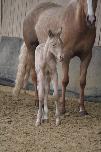 Minaro’s Blue Eyes – exklusives deutsches Reitpony Hengstfohlen in seltener Perlino-Farbe Am 12.04. um 19:45 Uhr hat dieses ganz besondere Hengstfohlen das Licht der Welt erblickt: Minaro’s Blue Eyes – ein echter Blickfang mit seiner außergewöhnlichen Perlino-Farbe und den strahlend blauen Augen. Abstammung: Vater: Centauros Midas Elite Hengst Mutter: Deleila Schon jetzt zeigt sich der kleine Mann neugierig, aufmerksam und mit einem freundlichen Wesen ausgestattet. Er wächst artgerecht auf, kennt den täglichen Umgang und überzeugt durch seine korrekte Statur sowie seine elegante Erscheinung – beste Voraussetzungen für eine erfolgreiche Zukunft im Sport oder als treuer Freizeitpartner. Bis zu seinem Auszug wird Minaro’s Blue Eyes selbstverständlich altersgerecht aufgezogen und lernt das Fohlen-ABC kennen. Dazu gehören unter anderem: - Halfterführigkeit - Hufe geben - Umgang mit dem Menschen - erste Gewöhnung an Alltagssituationen Wir wünschen uns für ihn ein liebevolles Zuhause mit Pferdeverstand, in dem er weiterhin gefördert und geschätzt wird. Bei ernsthaftem Interesse freuen wir uns über eine Nachricht.