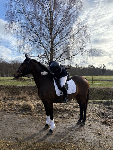10-jährige Stute, ca. 156 cm, sucht einen neuen Möhrchengeber 🥕 Sie ist absolut brav im Umgang – putzen, Hufe geben etc. sind auch für Kinder problemlos möglich. Sehr menschenbezogen und immer händelnbar auch wenn sie sich mal erschrickt. Sie geht sicher ins Gelände, kennt Stangenarbeit und bleibt auch auf fremden Anlagen ruhig und gelassen. Sie ist bereits als Turnierpferd eingetragen. Sie steht bis jetzt im Sommer 24/7 draußen im Winter Boxenhaltung in der Nacht gewohnt. Sie ist vollständig gegen Herpes & Influenza geimpft, hat aktuell 2 Eisen vorne kann aber auch barhuf laufen. Sie wurde erst etwas später angeritten und braucht beim Reiten einen feinfühligen Reiter, der ihr Sicherheit gibt. Wenn man sich aufeinander eingespielt hat, zeigt sie sich motiviert und möchte immer mitarbeiten. Wir können sie uns gut für einen ambitionierten Freizeitreiter oder ganz entspannte Alltagsarbeit vorstellen. Kein reines Anfänger- oder Kinderpony unter dem Sattel, aber mit viel Potenzial und der richtigen Förderung ein toller Partner. Sie wird nur in beste Hände abgegeben- bitte kein letzte Preis Anfragen ❤️