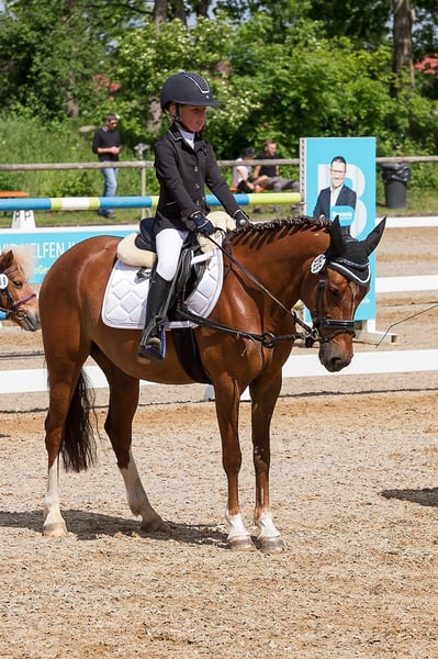 Baronesse sucht ein neues Zuhause. Die bildhübsche Fuchsstute verfügt über 3 hervorragende Grundgangarten. Sie läuft bei uns in der Reitschule von der Longen- bis hin zur Springstunde. Sie ist immer motiviert und sehr brav. Unsere Kinder waren mit Baronesse auf einigen WBO Turnieren. (Führzügel, Trabstangenwettbewerbe und Reiterwettbewerbe) Sie steht wegen Bestandsverkleinerung zum Verkauf. Baronesse kann jeder Zeit bei ernsthaftem Interesse Probe geritten werden.