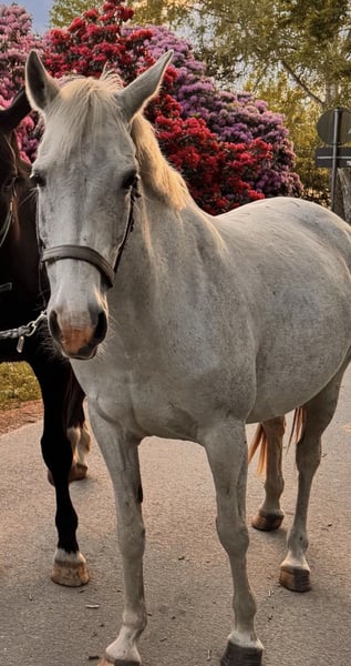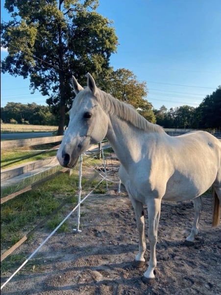 Unsere Schimmelstute sucht leider aufgrund privater Veränderungen ein neues Zuhause. Sie ist eine absolut treue Seele, menschenbezogen, brav und verlässlich - ob im Umgang mit Kindern, im Gelände oder sogar in der Reittherapie. Mehrere Monate stand sie für therapeutisches Reiten zur Verfügung. Unter dem Sattel ist sie ein echter Allrounder: Dressur wie Springen bis A- Niveau mit Potenzial nach oben. Für Familien, Jugendliche oder Reiter, die ein sicheres und liebenswertes Freizeitpony suchen, ist sie eine ideale Begleiterin. Darüber hinaus ist sie eine eingetragene Zuchtstute und hat bereits zwei Fohlen problemlos großgezogen. Damit bietet sie auch für kleine Züchter oder Pony-Liebhaber, die Zucht und Freizeit kombinieren möchten, interessante Möglichkeiten. Gesundheitlich möchten wir offen sein: Sie hat eine Allergie, die sich in leichtem Asthma äußert. Mit täglicher Bewegung und staubarmer Haltung kommt sie damit sehr gut zurecht. Sie bekommt bei uns ganz normales Heu. Diese Besonderheit schränkt sie nicht in ihrer Lebensfreude ein, sollte aber im neuen Zuhause berücksichtigt werden. Mit ein wenig Geduld und Liebe hat man ein wunderbar zuverlässiges, vielseitiges Pony an seiner Seite, das sowohl im Freizeit- als auch im Zucht-oder Therapiebereich glänzen kann.