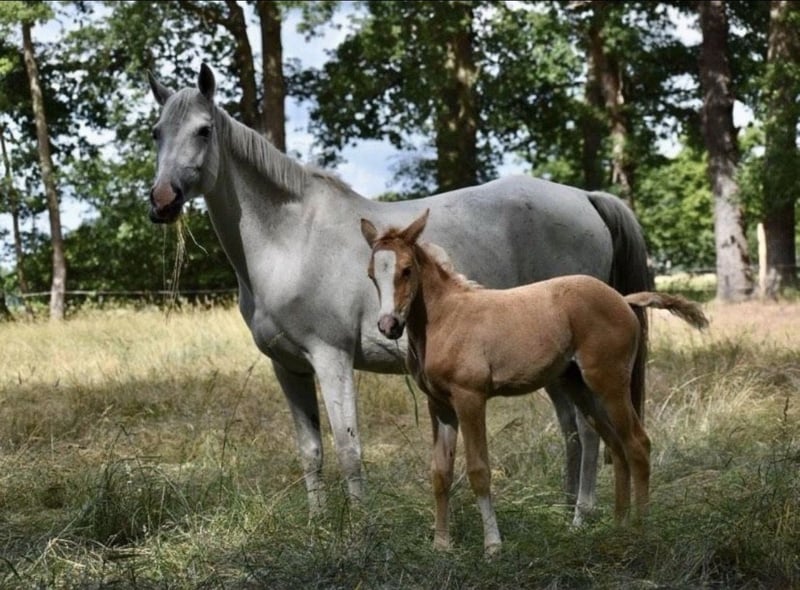 Notre jument alezane cherche malheureusement un nouveau foyer en raison de changements personnels. C'est une âme fidèle, très proche de l'humain, douce et fiable — que ce soit pour accompagner des enfants, en balade ou même en thérapie équestre. Elle a été disponible pendant plusieurs mois pour des séances de thérapie équestre. Sous la selle, c'est une véritable touche-à-tout : elle peut faire de la dressage comme du saut jusqu'au niveau A, avec un potentiel de progression. Pour une famille, des jeunes ou des cavaliers à la recherche d’un poney de loisir sûr et affectueux, elle est une partenaire idéale. De plus, c’est une poulinière inscrite en stud-book, qui a déjà élevé deux poulains sans problème. Elle offre ainsi des possibilités intéressantes pour de petits éleveurs ou des passionnés de poneys souhaitant combiner élevage et loisirs. Sur le plan de la santé, nous souhaitons être transparents : elle souffre d’une allergie qui se manifeste par un léger asthme. Avec une activité quotidienne et un environnement peu poussiéreux, elle s’en sort très bien. Elle reçoit chez nous du foin classique. Cette particularité ne limite pas sa joie de vivre, mais il faut en tenir compte dans son nouveau foyer. Avec un peu de patience et d’amour, on possède un poney fiable, polyvalent, qui peut briller aussi bien en loisir qu’en élevage ou en thérapie.