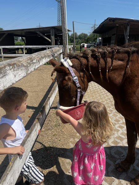 Schweren Herzens suchen wir für unsere 19-jährige Ponystute „Jane“ ein neues, liebevolles Zuhause. Jane ist seit knapp einem Jahr bei uns und hat sich in dieser Zeit als absolut zuverlässiges, ruhiges und menschenbezogenes Pony gezeigt. Sie ist super brav im Umgang, ausgeglichen und war zuvor viele Jahre als Schulpferd im Einsatz – daher kennt sie den Umgang mit Reitanfängern und Kindern sehr gut. Mit ihrem Stockmaß von ca. 143–145 cm ist sie ein ideales Pony für Groß und Klein. ⸻ Charakter & Haltung • sehr lieb, ruhig und ausgeglichen • absolut kinderlieb und anfängergeeignet (im Umgang) • kennt Offenstallhaltung in gemischter Stutenherde • rangmittig und sozial verträglich ⸻ ⚠️ Gesundheitlicher Hinweis Leider ist nach einem Ausritt eine Lahmheit (vermutlich im Kniebereich) aufgetreten. • Ursache aktuell nicht eindeutig geklärt (Trauma o.ä. möglich) • bereits zweimal tierärztlich behandelt (u.a. Hyaluron & Cortison) • aktuell nicht reitbar (lahm in Trab & Galopp) • seit Januar 2026 nicht mehr geritten und wird geschont Eine vollständige Genesung ist nicht ausgeschlossen – ggf. wäre auch eine weiterführende Behandlung/Operation denkbar. ⸻ Wen wir suchen Für Jane wünschen wir uns ein liebevolles Zuhause als Beistellpferd oder für einen ruhigen Altersplatz. Sie hat es nach ihrem Einsatz als Schulpferd absolut verdient, noch viele schöne Jahre in entspannter Umgebung zu verbringen. ⸻ Weitere Infos • Standort: München / Lochhausen • Abgabe inkl. Zubehör möglich • Tierarztunterlagen und Rechnungen können selbstverständlich eingesehen werden ⸻ Wir wünschen uns für Jane einen Platz, an dem sie wertgeschätzt wird und einfach „Pony sein“ darf. Bei ernsthaftem Interesse freuen wir uns über eine liebe Nachricht.