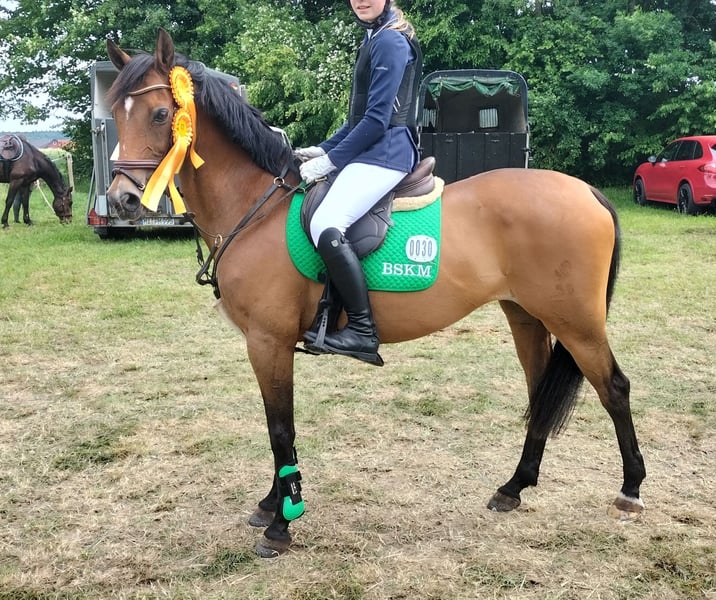 Leider wachsen Ponys nicht mit, daher müssen wir uns schweren Herzens wegen Umstieg auf Großpferd von unserer lieben und ehrgeizigen Ponystute trennen. Sie ist absolut ehrlich, leistungsbereit und immer engagiert im Parcours (ihre Zeiten sind selten zu schlagen 😉). Dressurmäßig lässt sie sich schön arbeiten, aber ihre Stärken liegen eindeutig im Springsport. 2007 geboren, aber lange noch nicht alt 💪 1,46 m Stockmaß L-Springen (1,20 m) gewonnen Bestens geeignet für den sofortigen Start in Meisterschaften und Cups, auch noch für die nächsten Jahre. Top fit und voll im Training. Unverbraucht und immer motiviert. Geimpft, schmiede- und verladefromm. Wir wünschen uns für sie einen Platz, wo sie bleiben kann, mit Familenanschluss und täglichem Weidegang. Da sie schon mal ehrgeizig im Parcours werden kann, ist sie kein reines Anfängerpony. Einen korrekten Sitz und eine ruhige Schenkellage setzen wir voraus. Nur in beste Hände abzugeben. Kein Notverkauf! Weitere Bilder oder auch Videos können wir gerne per WhatsApp übermitteln. Nur ernst gemeinte Anfragen unter Angabe des vollen Namens und einer Telefonnummer werden beantwortet.