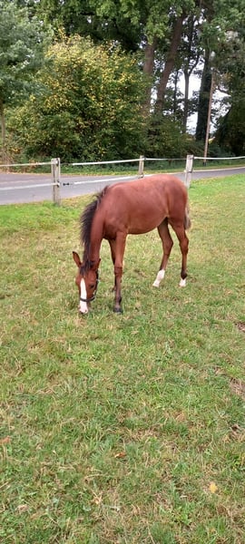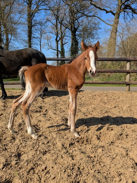 Hermoso potro de yegua de Dream in Gold AT x Dumbledor AT nacido el 30.3.25, de color marrón.