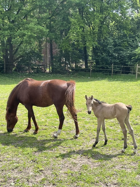 Wunderschöne 1-jährige Buckskin-Ponystute von Mescal – Fohlenprämie & Spitzenabstammung! ✨ Schweren Herzens gebe ich meine einjährige Ponystute in der seltenen Farbe Buckskin aus Zeitmangel in fördernde, liebevolle Hände ab. Sie ist eine freundliche, neugierige und menschenbezogene junge Dame, die das Führen, Putzen und Hufe geben bereits kennt. Aufgewachsen im Offenstall in einer kleinen Herde, zeigt sie sich sozial, ausgeglichen und sehr lernfreudig. Abstammung: Mescal x Brilliants Golden Boy x Kaiser Konrad Ihre Mutter ist im Springen bis zur Klasse M gegangen, der Vater Mescal überzeugt durch Typ, Rittigkeit und hervorragendes Springvermögen. Die junge Stute erhielt außerdem eine Fohlenprämie, was ihre Qualität in Typ, Bewegung und Ausdruck unterstreicht. Voraussichtliches Endmaß: ca. 1,45–1,48 m – sportliches Endmaßpony mit viel Perspektive für Sport, Freizeit oder Zucht. Ein echtes Schmuckstück mit Zukunft und Charme! Nachwuchsstute mit Herz, Köpfchen und viel Potenzial!