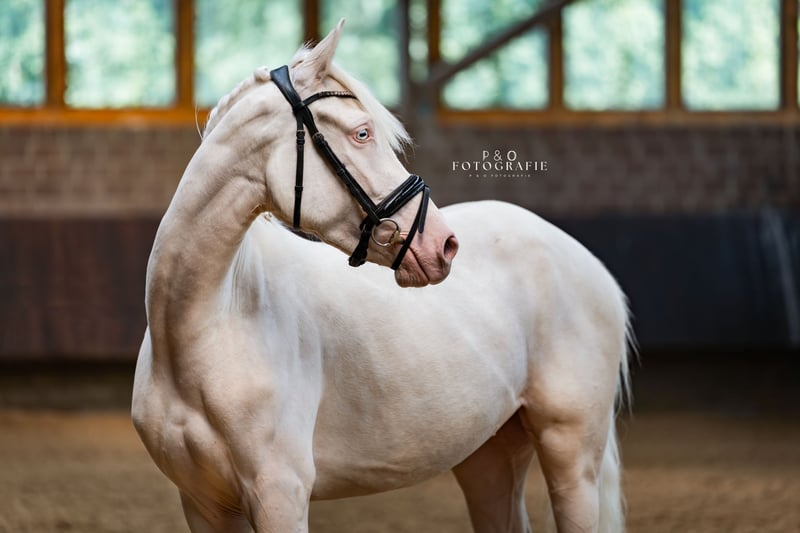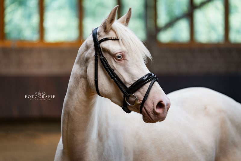 Na sprzedaż piękna, 4-letnia niemiecka kucykowa klacz sportowa o pożądanym perlino. Pochodząca od Champ de Luxe (FS Champion de Luxe, jeden z najbardziej wpływowych ogierów do ujeżdżenia na kucykach – krajowy zwycięzca, wielokrotny uczestnik konkursów i wybitny, topowy reproduktor). Zachwyca trzema wysokiej jakości chodem, doskonałą mechaniką i dużą elastycznością. Szczególnie wyróżniają się jej galop z unoszeniem się do góry oraz rytmiczna, energiczna praca w stępie – najlepsze predyspozycje do udanej kariery sportowej. Świetnie skacze na wolnym, a także zna małe przeszkody pod siodłem! Pod siodłem jest ujeżdżona, chętna do nauki i w wieku odpowiednim do łatwego prowadzenia. Ma przyjemny charakter, pozostaje zawsze pod kontrolą i jasna w głowie. Na zawodach już startowała pod 12-letnią dziewczynką, pokazując się jako pewna siebie, zrelaksowana i nie patrząca na przeszkody, a także zawsze dobrze odbierana przez sędziów! Doskonała perspektywa na udaną przyszłość w sporcie! Bardzo interesująca młoda klacz dla ambitnych jeźdźców, którzy chcą połączyć jakość, rozmiar i wyjątkowy kolor. Zgodna z innymi końmi i kucykami, dobrze znosi transport, zna traktory, psy, koty i dzieci. Aktualny przegląd techniczny bez zastrzeżeń!