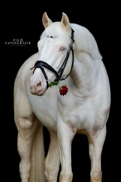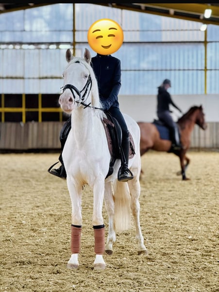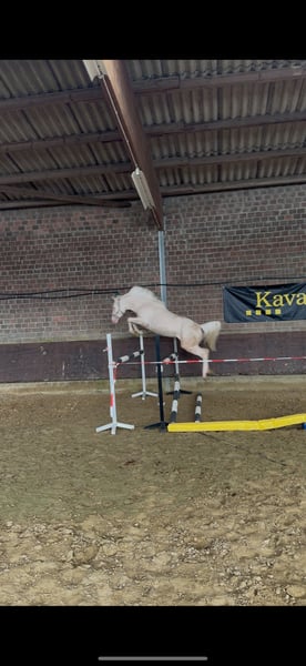 À vendre, une magnifique jument de 4 ans, ponette de dressage allemande, d'une couleur Perlino très prisée. Elle descend de Champ de Luxe (FS Champion de Luxe, l’un des étalons de dressage ponies les plus influents — étalon champion fédéral, multiple participant à des championnats et un reproducteur d’exception). Elle impressionne par ses trois allures de qualité, sa mécanique excellente et sa grande élasticité. Ses points forts sont notamment son galop monté en pente douce et son trot très rythmé et énergique — des qualités idéales pour une carrière sportive prometteuse. Elle possède un saut en liberté très bien placé, et elle connaît également les petits sauts sous la selle ! Sous la selle, elle se montre montable, volontaire à apprendre et, à son âge, facile à gérer. Elle a une attitude positive, tout en restant toujours contrôlable et lucide. Lors de ses sorties en compétition, elle a déjà été présentée par une fille de 12 ans parmi des cavaliers professionnels. Elle y fait preuve de confiance, de calme et ne regarde pas, ce qui lui vaut également une bonne appréciation des juges ! Elle offre de belles perspectives pour une carrière sportive réussie ! Une jument montante très intéressante pour les cavalières et cavaliers ambitieux souhaitant allier qualité, taille et couleur exceptionnelle. Elle est débourrée, très sociable avec les autres chevaux et poneys. Elle connaît les camions, les chiens, les chats et les enfants. Un certificat vétérinaire récent sans aucune anomalie est disponible !