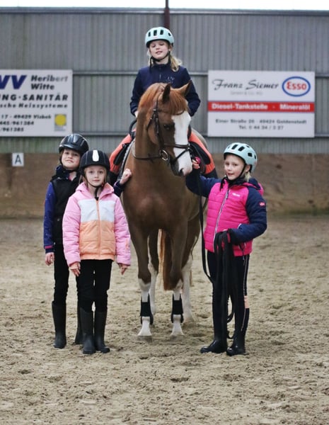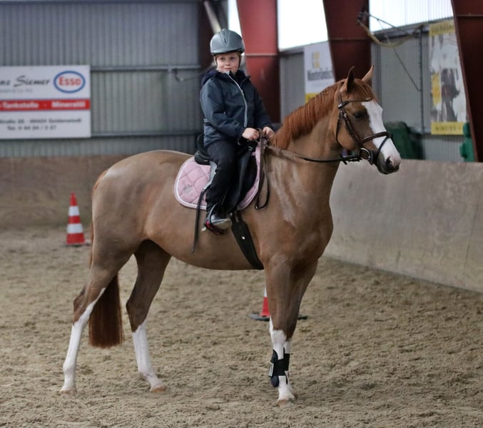 Verkaufe Deutsches Reitpony-Stute (Welsh B x Hannoveraner = Reitpony) Zum Verkauf steht eine wunderschöne deutsche Reitpony-Stute mit Top Abstammung für den Sportbereich, geboren im Jahr 2021. Sie besticht durch ihr elegantes Erscheinungsbild in Fuchsfärbung und hat ein Stockmaß von 156 cm. Die junge Dame ist bestens für den Dressursport geeignet und zeigt viel Talent sowie eine angenehme Grundhaltung. Charakterstark und freundlich. . Milka ist eine Stute mit Charm und freundliche Einstellung, sie eine Familie sucht wo sie ihre geduldige Art zur Geltung bringen darf. Lernwillig und arbeitsbereit, Milka hat keine Ambition zu flitzen, ist eher gemutlich unterwegs. Röntgenologisch untersucht jedoch ohne Befund, klinische Ankaufsuntersuchung wird zeitnah zur Übergabe neu durchgeführt. Milka ist zurzeit geschoren und unter Winterdecke. Sie ist freundlich, lernwillig und lässt sich gut reiten. Ideal Familienpony/Pferd genau richtig für eine Mutter und Kind / Kinder zu reiten. Milka ist von Kindern ab 8 Jahre geritten, die ist eine zuverlässige, genügsame Partnerin für den Dressurunterricht, Turniere oder allg Freizeitpartnerin die viel Freude schenken kann. Bei Interesse oder weiteren Fragen stehen wir gerne zur Verfügung. Nur seriöse Anfragen, Besichtigungen Samstagvormittag nach telefonischer Vereinbarung möglich. Videos sind vorhanden. Wir bitten um Verständnis, dass Videos werden nur nach telefinischer Kontaktaufnahme per whatsapp verschickt.