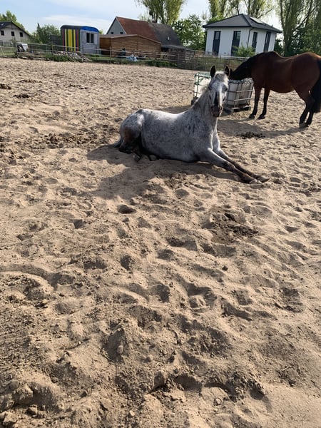 Unsere Sternchen sucht ihr perfektes Zuhause ! Sternchen ist eine liebe Pony-Mix-Stute, bis zu diesem Jahr durfte sie entspannt heranwachsen und wurde im Sommer mit fünf Jahren schonend angeritten. Derzeit läuft sie mit meiner Frau und ihrer Reitbeteiligung ( 11 jähriges Mädchen) sicher frei Schritt und Trab, an den Galopp tasten wir uns derzeit ran. Im Gelände ist sie absolut unerschrocken, auch an befahrenen Hauptstraßen ist sie die Ruhe selbst und im See geht sie gerne baden, an der Longe sind Hindernisse kein Problem..unterm Reiter haben wir es noch nicht probiert. Sternchen ist ca 1,40m groß (müsste aber nochmal gemessen werden) und geht barhuf. Da wir mit Sternchen stetig weiter trainieren, sinkt der Verhandlungsspielraum sobald sie mehr kann bzw. sie wird teurer. Es handelt sich keines Falls um einen Notverkauf und daher wird sie sich auch nicht unter Wert verkauft. Aufgrund von Reittourismus veranschlagen wir für ein Probereiten 25€ die selbstverständlich beim Kauf mit verrechnet werden. Ratenzahlung wäre möglich bei einer Anzahlung bzw. wenn die Stute vor Ort so lange stehen bleibt. Bei Fragen stehe ich gerne jederzeit zur Verfügung:)
