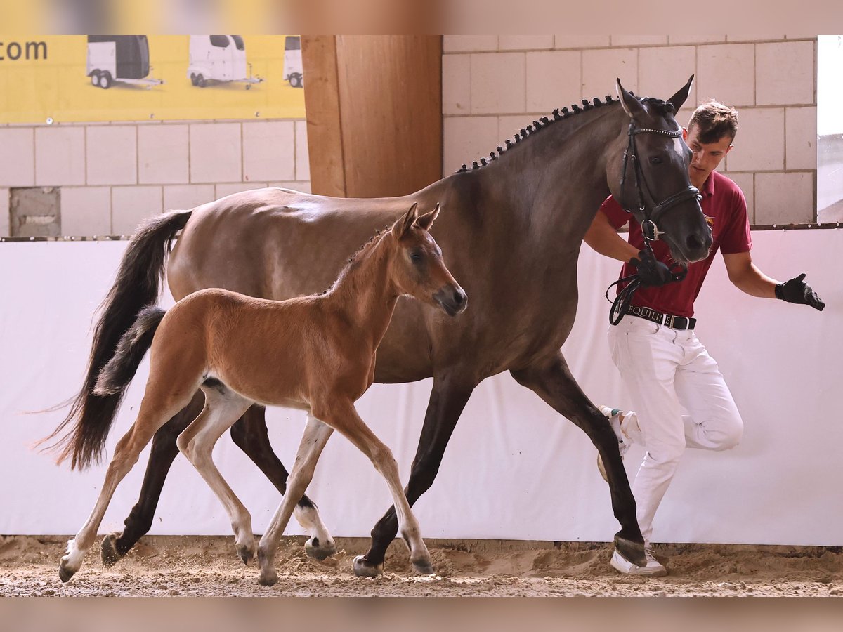 Friedrichshof Donnerlittchen StPrSt I hereby offer my 5-year-old German Riding Pony mare for sale. Purchased as a foal from the breeder, she has grown up in a herd environment in a species-appropriate manner. She was started under saddle at the age of 3 and has been performance tested. In 2023, she also received the award of State Premium Mare. In 2024, she had her first foal. This colt became a champion foal, which can also be viewed if interested. This year, she had a filly, which also qualified for the foal championship. This foal can be viewed as well. We have recently started riding her again slowly. FH Donnerlittchen is characterized by her rideability as well as her honest and performance-oriented attitude. Even at the age of 3, she led trail rides and was an absolute lifesaver. A (large) pony that you can really have fun with and is absolutely capable of great performance and eager to do so. She has three excellent basic gaits and also looks good over jumps. After having 2 foals, I now see her under saddle continuing towards "success." Of course, she would also be interesting as a breeding mare. (2 out of 2 foals to championship, can't get better than that!) Inquiries should be directed to Nadine Lienert Tel.: 01799076844