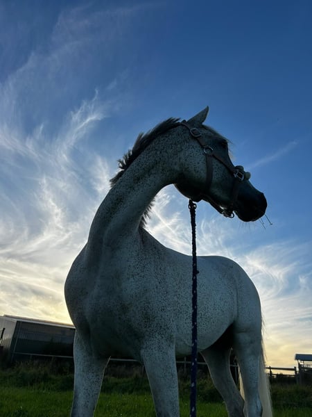 Wonderful pony as a "all-in-one package" including a new, custom-fitted saddle and complete accessories! Thanks to her excellent pedigree, she is suitable for both breeding and as a sport or family pony. She is beautiful, and with patience and encouragement, she will soon become a versatile all-rounder pony. Due to lack of time, this lovely mare was only backed last year at age 7. She is currently still in basic training and is not yet suitable for beginners, as she has a lot of go (but can develop into one). She is very versatile, with a lot of talent and caution over jumps. She is already jumping small courses (70–80 cm) and can be gradually increased in height (later, height should not be an issue). We started slowly to give her confidence, as she had no previous experience. She would also make a great trail pony, thanks to her lovely, big canter and relaxed nature in the field. She is well-behaved in handling and very nice and easy to ride in dressage. If you are looking for a pony to further develop yourself, here is a wonderful partner with lots of quality. ** Barefoot Recently vaccinated and dewormed Battery and X-ray scans from 2025, all clear Currently measured at 14.6 hh Also suitable for breeding TECH ONE spring saddle, new and specially fitted Micklem bridle EQULINE saddle pad Front girth HORSEWARE stable blankets Fly sheet Excellent cooling blanket Front leg protection boots by Equick A pony with a great future, ready to ride immediately – truly ideal for a mother/child team. If interested, please call us or send a message via WhatsApp: +49 172 9809454 Videos are available and can be sent upon request. Trial riding possible for a fee of €30, which will be deducted from the purchase price.