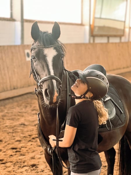 Zum Verkauf steht unser lieber, 10-jähriger Wallach Dark Dancer. Genannt wird er Dornik - nach seinem Vater und Opa. Er ist 1,48 m groß. Wir haben Dornik vor 1,5 Jahren für unsere damals noch knapp 11-jährige Tochter gekauft. Schlussendlich ist sie aber reiterlich noch nicht weit genug, um ihm alleine vollends gerecht zu werden und ich als Mutter komme nicht aus dem Reitsport, sodass wir ein neues Zuhause für ihn suchen. Dornik ist lieb und für jeden Mist zu haben: rückwärts reiten, mit Halsring, ohne Sattel, Stoppelfeld-Saison, kleine Kinder - alles kein Problem. Durch Trubel lässt er sich nicht beeindrucken: zwei Mal großes Weihnachtsreiten mit viel Publikum auf dem Hof, Auswärtstraining, Ausflug in die etwas entfernte Heide und Reitabzeichen haben wir mit ihm gemacht. Hunde, Trecker, Flugzeuge etc. kennt er alles. Bei der Vorbesitzerin hat er Turniererfahrung gesammelt und wir sind sicher, dass er das auch immer noch ohne Probleme tut. Er ist verlade- und schmiedefromm. Bei uns geht er barhuf, bei der Vorbesitzerin hatte er vorne Eisen. Hier lebt er im Offenstall in einer gemischten Herde, zuvor war er auch die Box gewöhnt. Am Springen hat Dornik besonders viel Spaß: auch bei reiterlichen Fehlern hat er noch nie geparkt und rettet die Situation zuverlässig. Er geht alleine und in der Gruppe ins Gelände. Wir könnten uns gut ein Kind vorstellen, dass reiterlich weiter ist als unsere Tochter, ein Mutter-Kind-Gespannt oder eine ponyliebende erwachsene Person! Wir haben damals eine AKU gemacht ohne Befund, die Röntgenbilder liegen vor. Er ist geimpft und gesund. Die Physio war jährlich da. Zähne wurden gerade erst gemacht. Die erste Kontaktaufnahme gerne per WhatsApp, weil ich beruflich nicht gut telefonisch erreichbar bin.