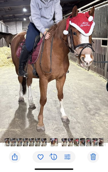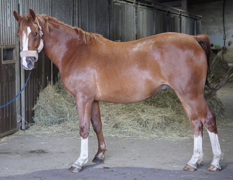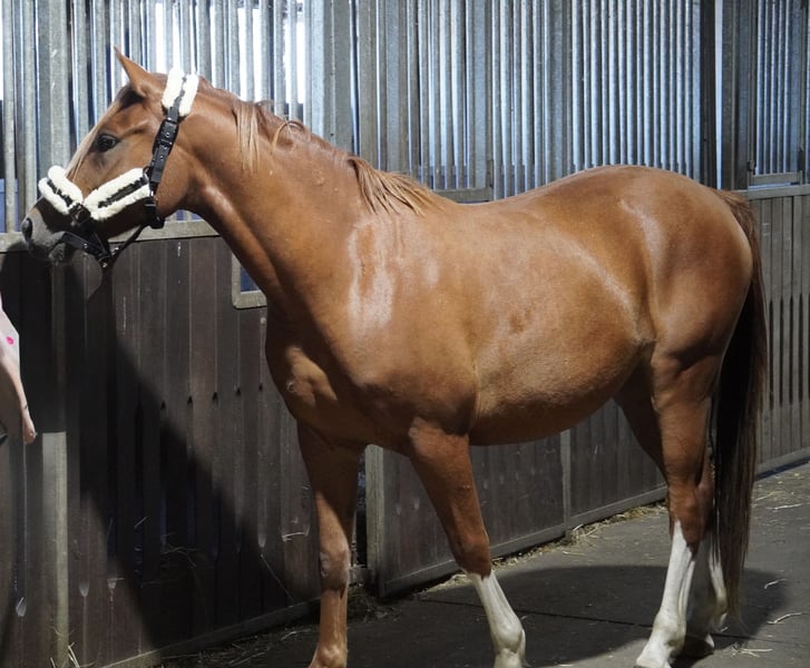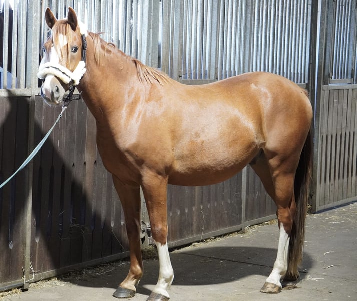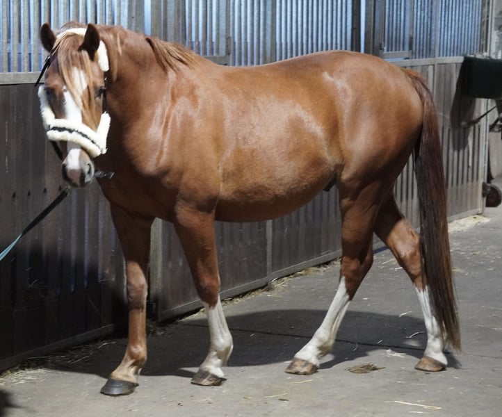 Dreamy German Riding Pony, Gelding with a Heart of Gold This 3.5-year-old German Riding Pony gelding captivates with his wonderful temperament and is developing into an ideal children's pony. He currently measures 1.45 meters at the withers. He demonstrates very good basic gaits and impresses in free jumping with excellent technique and awareness. The gelding can be easily backed and offers excellent prerequisites for a solid training. He is consistently cooperative, brave, and friendly in handling. At present, he is lunged with saddle and bridle and is being led and ridden. Perfect for children, beginners, or as a future family pony! He has a minor cosmetic flaw that does not affect his performance, which is why he is offered at a significantly reduced price.