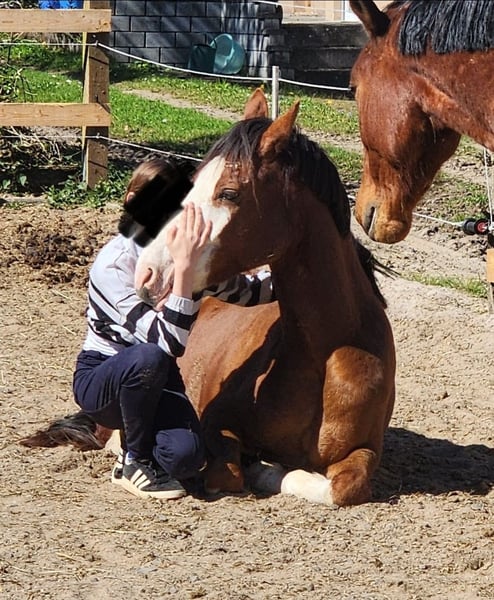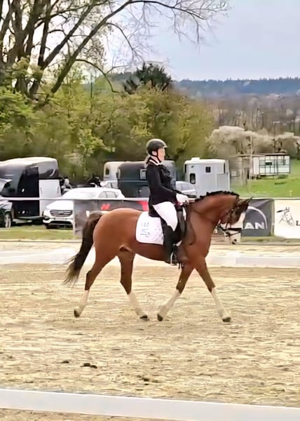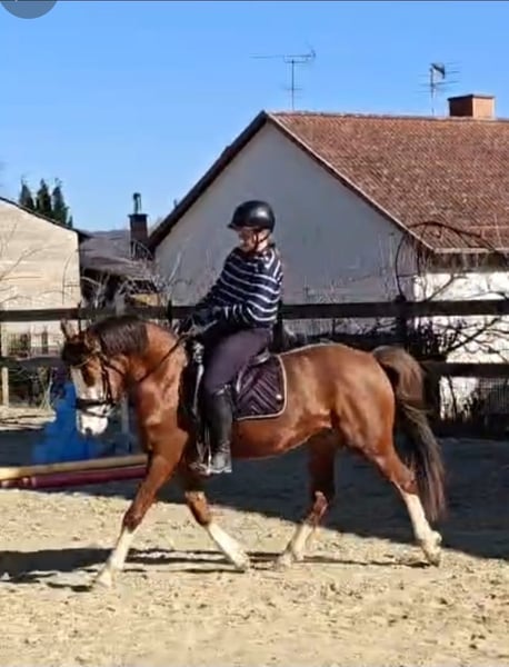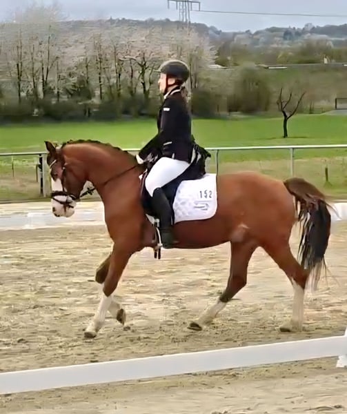 Hier kommt Captain Jack Sparrow 🥳 Wallach mit einem Herz aus Gold. Absoluter Hingucker mit seinen 4 weißen Beinen, der Laterne und den teil-blauen Augen. 142 cm groß, sehr rahmig und mit imposanter Halsung. 5 jährig erst angeritten, stehts anständig und gerade seine ersten Turnier Erfahrungen vorbildlich gemacht. Weitere Starts bereits gemeldet. Springt im Training bereits einen kleinen Parcours und lässt erahnen, dass hier seine Zukunft liegt. Solide GGA, befindet sich dressurmäßig auf A Niveau. Aufgrund seines Alters noch etwas umweltorientiert aber immer händelbar. Schmiede- & verladefromm, steht auch alleine auf dem Hänger und lässt sich problemlos auch von Kindern führen, putzen und händeln. Kann von gut reitenden Jugendlichen auf Platz und Halle geritten werden, geht auch schon mit Anfängern brav an der Longe, trotzdem noch kein reines Kinderpony. Röntgen obB aus 25 vorhanden, gesundheitlich top. Geht barhuf und steht in kleiner Gruppe. Verträglich mit Wallachen und Stuten. Weitere Infos und Videos gerne per WhatsApp unter 015111677809.