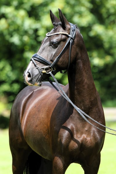 Don Pedro to głęboko czarny wałach o rodowodzie Dreidimensional, delikatnie wytrenowany, który już pokazał się z dobrej strony na zawodach. Charakteryzuje się bardzo dobrym chodem, solidnym stępem, galopem oraz wysoką jeździeckością. Jest zawsze pracowity i zmotywowany, życzylibyśmy mu wspaniałej rodzinie, która dostrzeże jego potencjał i będzie go dalej rozwijać. Do tej pory był prezentowany na zawodach wyłącznie przez młode dziewczęta i w 2024 roku zakwalifikował się nawet do Mistrzostw Krajowych (Bundeschampionat). Idealna koń dla młodego jeźdźca do startów w młodzieżowym pucharze i na spokojne wprowadzenie w sport. Koń znajduje się na końcu wskazanej kategorii. Odwiedź, wypróbuj i zakochaj się!