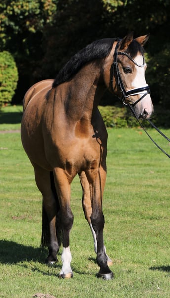 Hier wird schweren Herzens im Auftrag der Familie dieser aufällige bunte Falbwallach zum Verkauf angeboten. Diamond Star war als Junghengst gekört und sogar Prämienhengst,was seine Qualität nochmals unterstreicht. Als junges Pferd war er hoch erfolgreich in Reitpferdeprüfungen,er konnte sich sogar als Finalist auf dem Bundeschampionat platzieren. Weiter von einer Jugendlichen vorgestellt,war er siegreich in Dressurpony A und L und qualifizierte sich nochmals für das Bundeschampionat. Er konnte danach einige Siege und Platzierungen bis zur Klasse L sammeln. Diamond Star ist ein wahrer Lehrmeister, der sich sehr schön reiten lässt und eine enorme Grundqualität mitbringt. Nicht Glotzig oder spannig, ehr ein Pony zum " anschieben". Diamond Star wartet auf seine Famile,wo er neu durchstarten darf. Aktuell klinisch und röngtnologisch O.B. untersucht Weitere aussagekräftige Videos verfügbar, gerne anfragen. Der Wallach deckt gut ab! Auch für einen kleinen Erwachsenen denkbar. Unkompliziert auf Paddock,Weide,Führmaschine und Gelände. Preislich am Ende der angegenenen Kategorie.