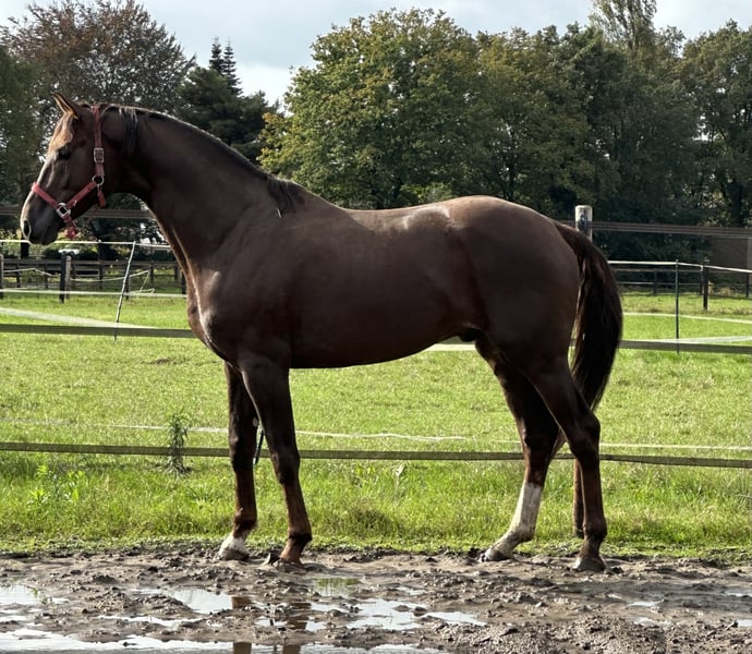 Un hermoso potro joven. Comenzó su entrenamiento bajo la silla algo tarde, pero ha alcanzado un buen nivel en su entrenamiento. Aún está algo verde en su desarrollo, por lo que no es adecuado para un jinete principiante. Es un caballo ideal para alguien que quiera seguir educándolo y perfeccionándolo. Disponibles radiografías recientes. Se puede ver en Hunsel, Países Bajos.