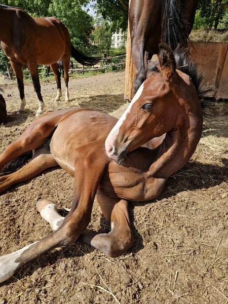 Pouliche promette avec du style, du charme et un très bon mouvement, directement du éleveur. - né en 04/2025 - taille estimée à 1,80-1,85 m - By Your Side x Faveur x Rosentau Je répondrai volontiers aux questions concernant le poulain. Si nécessaire, le poulain peut rester sur place pour grandir dans un environnement déjà familier. Pas de vente urgente ! Pas de manque de place ! Pas de paiement échelonné !